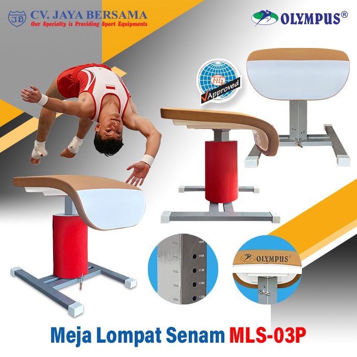 Spesifikasi Meja Lompat Senam MLS-03P (Gymnastics Vaulting Table) merek Olympus sebagai berikut :