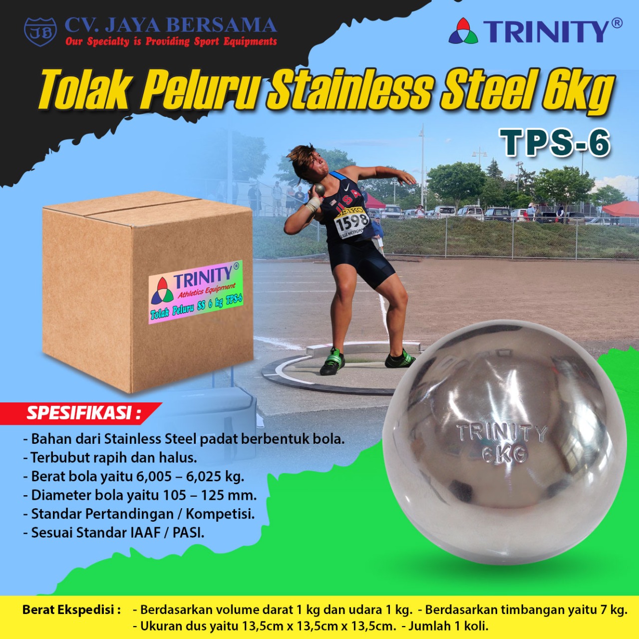 Spesifikasi Tolak Peluru Stainless Steel 6kg TPS-6 merek Trinity sebagai berikut :
